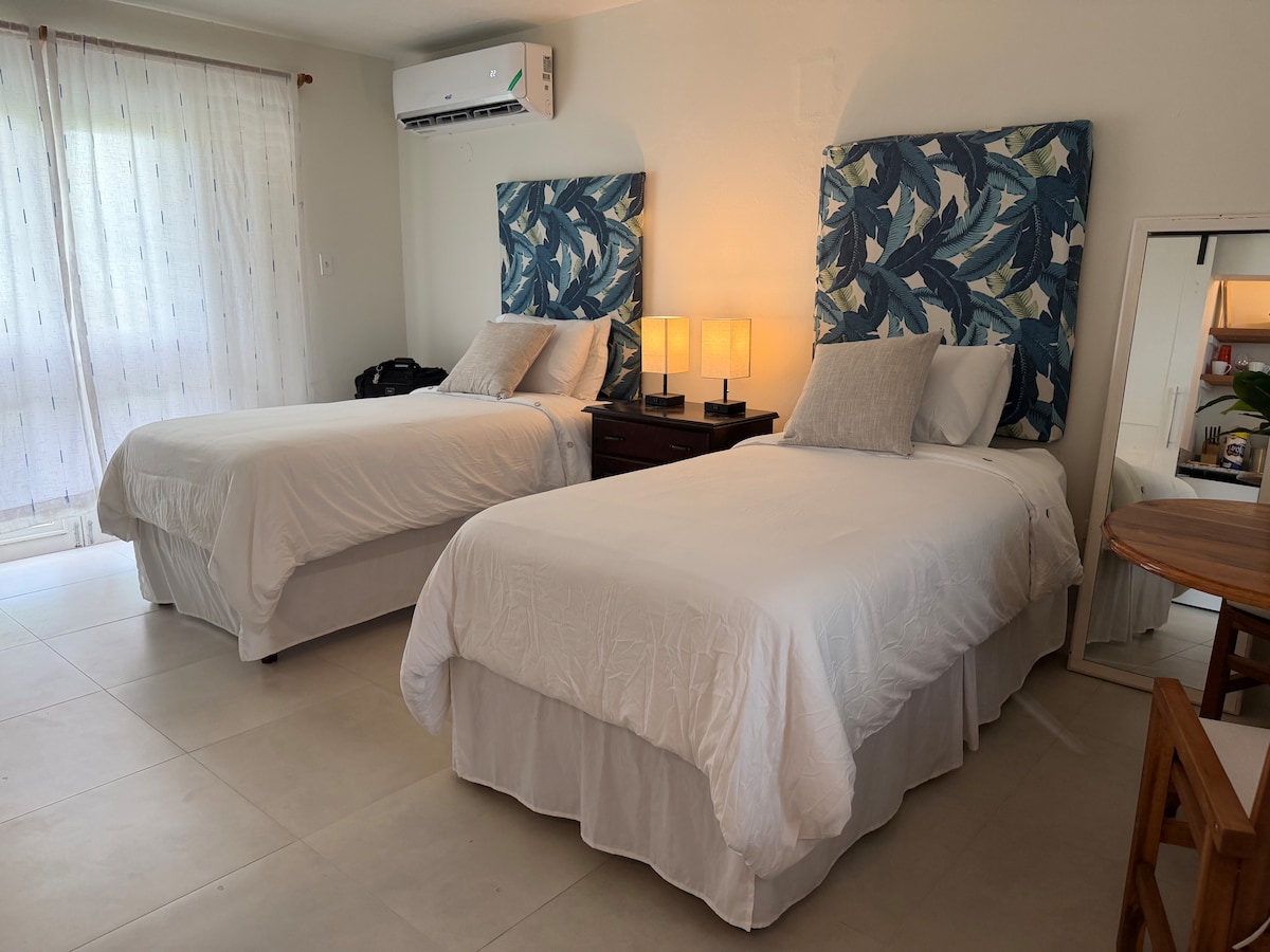 Welcome! Make this stunning studio apartment your home away from home. Nestled on 2 acres, the villa is surrounded by luscious nature with sunset and partial sea views. You will be only 15mins drive away from the resort town of Negril and 45mins drive away from Montego Bay, the second city, with a direct highway connection. The studio is self-contained with private, self-check in access, ample parking and 24/7 surveillance. We speak English, Italian and Spanish!