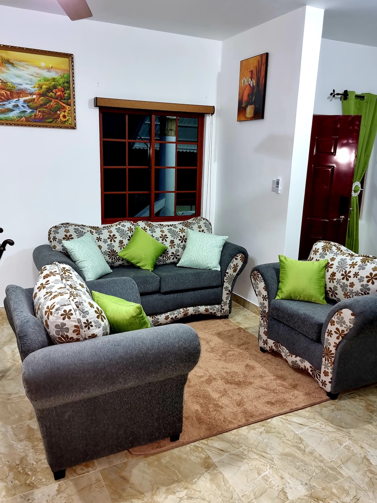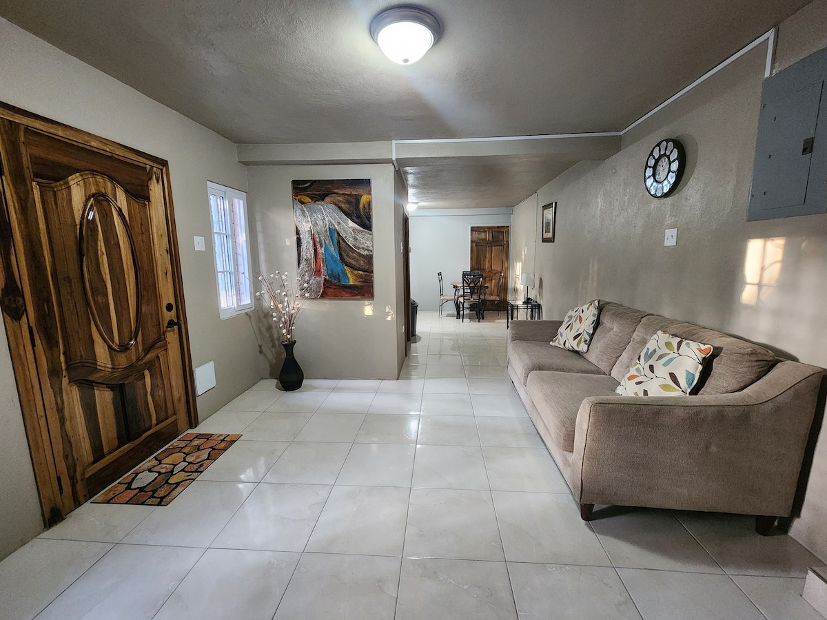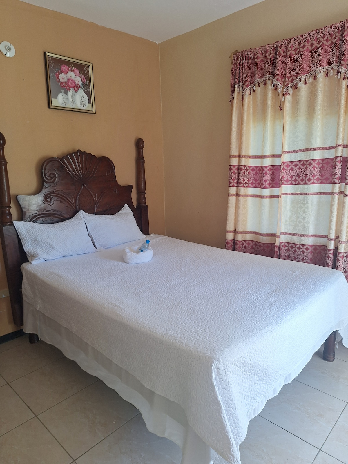 On the beach road (Norman Manley Blvd), directly across from the lovely beach, is this bright, cozy apartment. You instantly feel at home because of the serene domestic atmosphere it gives. The room, living space, kitchen, and bathroom are all furnished. Quite location, close to town activities, and internet access.