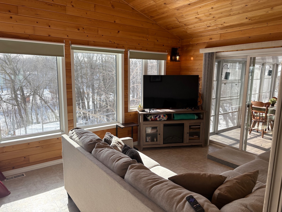 Bring your family and friends to enjoy everything this cabin & town have to offer! Only minutes away from the St Malo provincial park, lake & beach, it sure won't disappoint! Head over to the beach and enjoy the sun and lake fun or grab some floaties and go down the River! Go hiking on the nearby trail and enjoy some delicious ice cream at the Barefoot Café! Come in the winter to do some cross-country skiing or ice fish directly on the lake! Welcome to Pineridge Point St Malo.