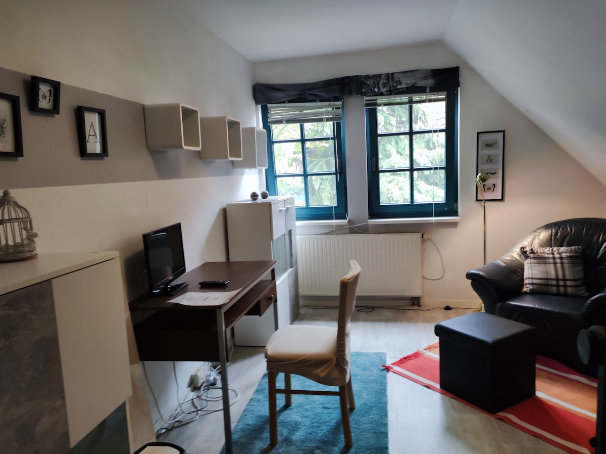 Du wirst die stilvolle Ausstattung dieser charmanten Unterkunft lieben. Ein ruhiges Zimmer zum sich wohl fühlen. Menschen, die sich gut verstehen können das Zimmer auch zu zweit nutzen, das Bett ist 1,40 m breit. In dem Haus wohnen nur ich und eine ältere Dame in der Einliegerwohnung. Dazu haben wir einen schönen Garten und gleich in 150 m Entfernung alle gängigen Lebensmittelgeschäfte sowie einen Bauern mit Hofladen. Zum Frühstück gibt es Kaffee, alles andere bedarf der persönlichen Absprache.