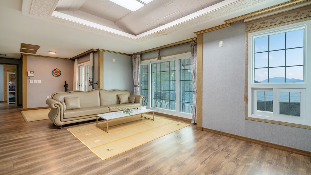 바다를 바라보며 가족,친구들이 아늑하고 행복한 시간을 보낼 수 있는 깨끗하고 넓은 숙소입니다. [숙소 구조 설명] 숙소는 엘리베이터가 있는 건물 3층에 위치하고 있으며 퀸사이즈 침대가 있는 침대방 2개, 퀸사이즈 침구세트가 준비되어 있는 온돌방 1개가 있습니다. 욕실은 총 2개가 있으며 1개는 3층에 다른 1개는 복층 계단을 올라가면 있습니다. 루프탑까지는 내부계단으로 이동하고 다락방을 지나면 멋진 바다를 볼 수 있는 루프탑이 나옵니다.