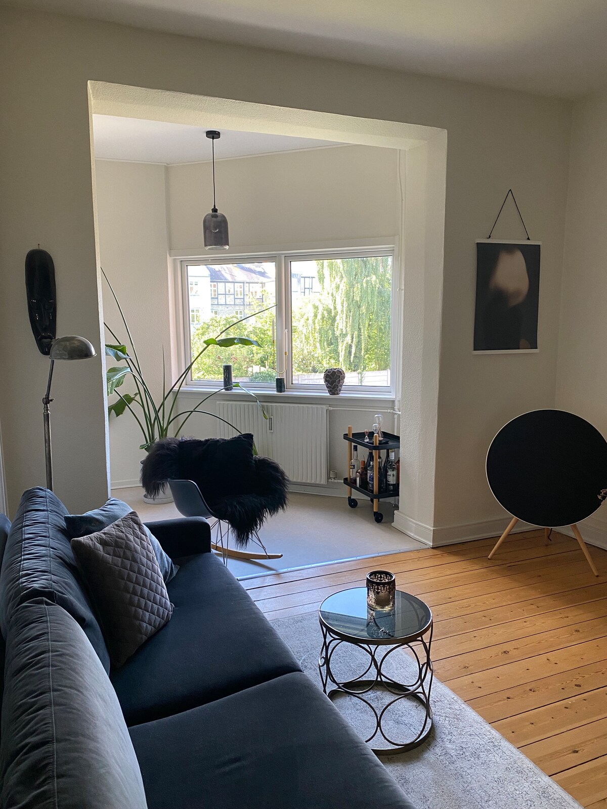 WATERFRONT APARTMENT, BEATYFULLY LOCATED – CLOSE TO ODENSE CENTER - Free parking and bikes available. Located above the ground floor and is done in a personalized scandinavian style with calm colors and a lot of light. Private entrance from a staircase/balcony, view to forest and water. The apartment is fully furnished. Two bedrooms, spacious bathroom and a integrated kitchen/ living room. We live in the ground floor and are reachable at any time. City center is a ten minutes bike ride away.