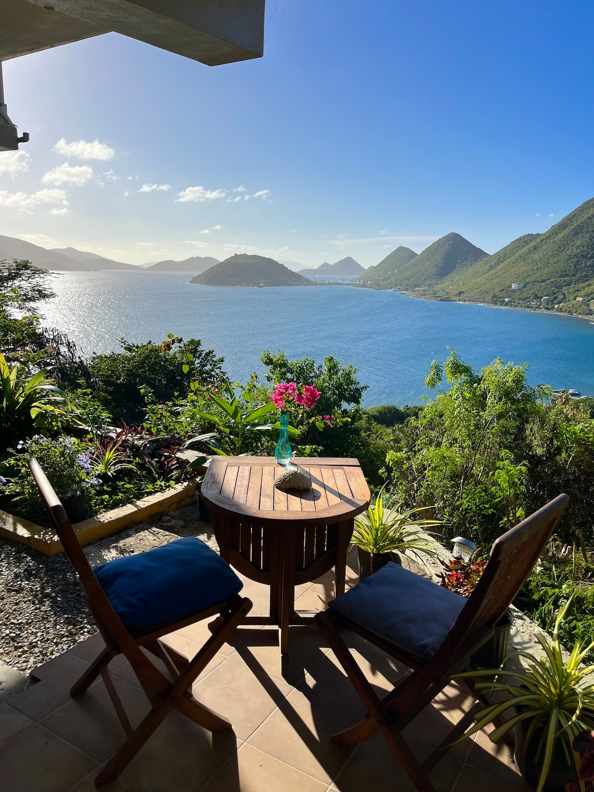 With stunning OCEAN VIEWS, this Coral Bay bedroom suite in St John is tucked in the countryside, yet convenient to beaches. Kitchenette for light meals, indoor powder room (outdoor shower), BBQ, AC, TV, Wifi. Great for hikers, nature lovers & other travelers looking for a cozy, tropical little hideaway while seeking outdoor adventure as you visit St John USVI island. 500 ft elevation, fully paved road, convenient drive to all St John beaches, above Coral Bay restaurants/bars, shops, grocery.