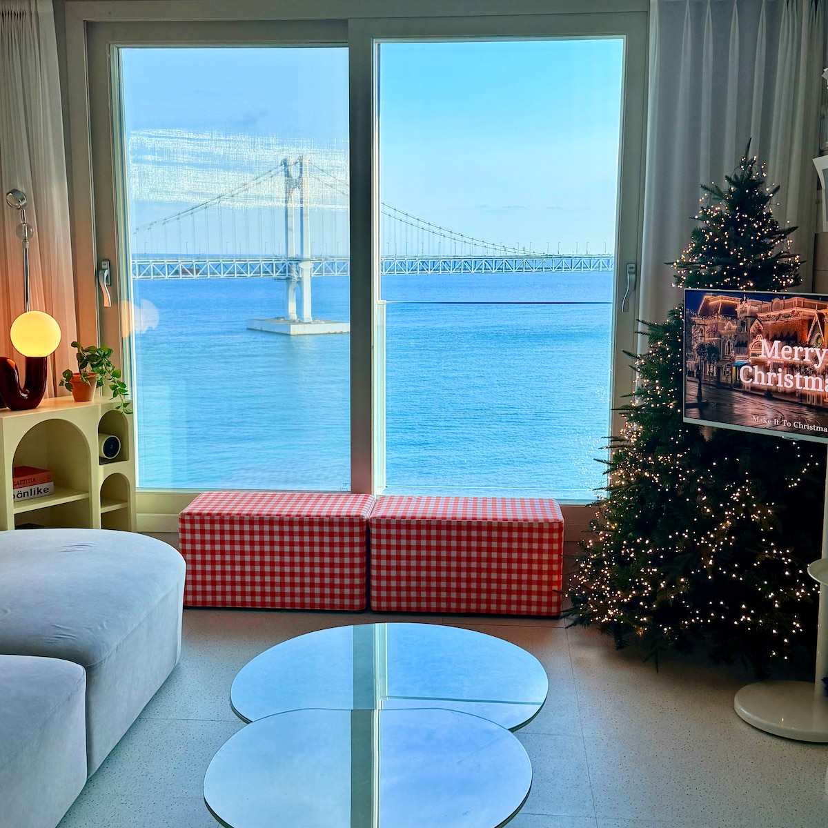 #全海景 #新建 #2间卧室+客厅,3张床 #广安大桥前景 #免费停车 #20坪 #最佳清洁度 #Mimen