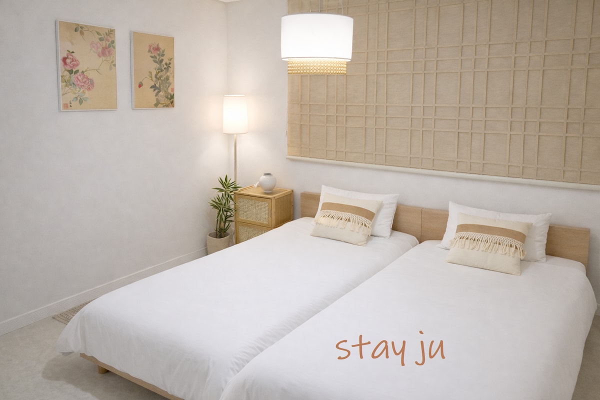 도심속의 한강변 조용한 숙소에서 편안한 시간을 보내세요. 합정역, YG 엔터테인먼트, 망원시장 근처에 위치해 이동이 편리하고, 주택가 안쪽에 자리해 도심의 소음에서 벗어나 조용하게 머물 수 있는 공간입니다. 넉넉한 3개의 룸과 3 개의 퀸사이즈 침대, 호텔식 침구류가 완비되어 있어 가족, 친구들과 함께 편안한 휴식을 취하기에 안성맞춤입니다. 깔끔하고 따뜻한 인테리어, 여유 있는 거실과 넓은 식탁, 취사가 가능한 주방까지, 마치 내 집처럼 편안한 시간을 보내실 수 있도록 준비해 두었어요. 🚌 교통 공항버스 6002번 합정역 정류장: 도보 10분 합정역 2,6호선 8번출구: 도보 10분 마을버스 16번 새 서울의원 하차: 도보 3분 🏪 주변 시설 24시 편의점: 도보 2분(간단한 생필품, 스낵을 팔아요) 24시 코인세탁소: 도보 5분(여행 중 빨래 가능해요) 디저트 카페: 도보 1분(달콤한 티라미수와 커피가 있어요) 홈플러스 마트: 도보 1분(여행 마트 쇼핑은 필수)