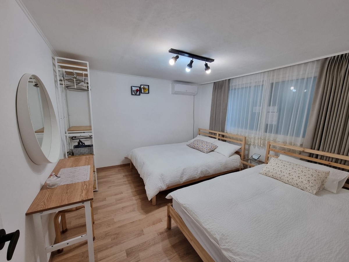 【温馨舒适的住宿】弘大#明洞、钟路30分钟#新村#合井站步行7分钟#YG#机场快线#3床