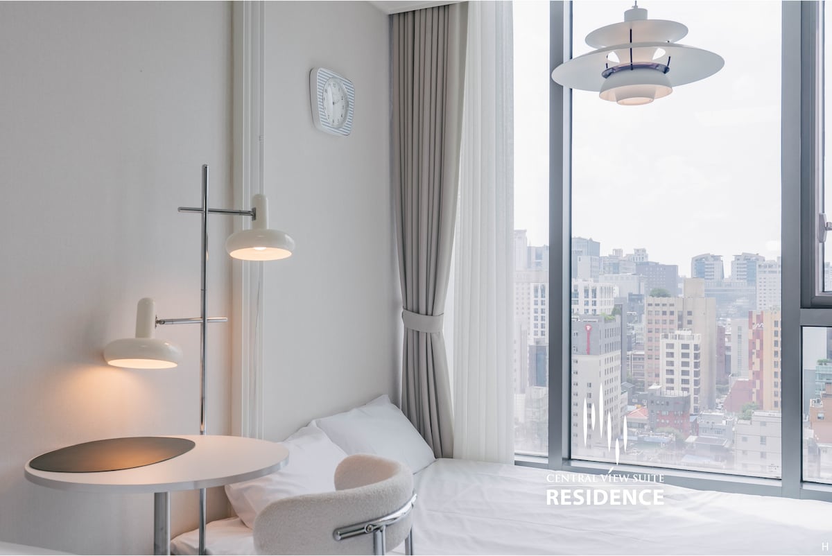 SEOUL SKYLINE from TOP FLOOR Panoramic Landmark : Hangang River, Seoul N Tower, and Lotte Tower On the Move: Walk 10 secs to Bongeunsa Station (Line 9), 10mins to Samseong Station (Line 2) From Airport: Take AREX and Line9, or Airport Bus Urban Essentials: COEX Shopping Mall, Grocery Shops nearby Cultural Connection: 5 mins to the historic Bongeun Temple (Oldest temple: Founded in 794) Design Touch: This place was designed and renovated by K-pop Star, Got7