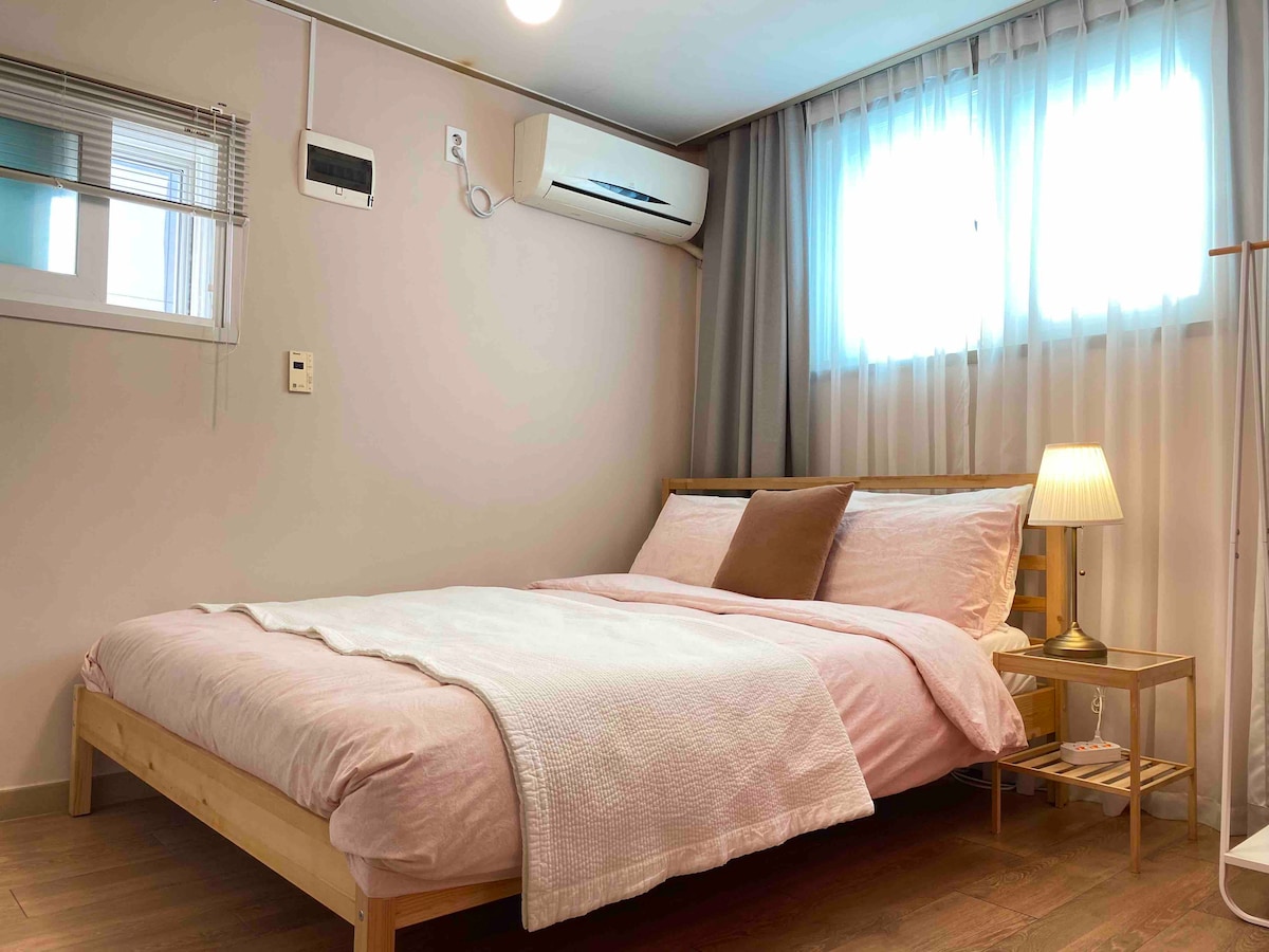 在 D.1881 享受 “温暖又安静空间中的休息” -位于大学区附近,安静又安全的住宅区 -可轻松前往首尔各大主要旅游景点 每个房间均配备空调 & 冬天也有温暖的浴室 可供4–5人家庭一起用餐的圆形餐桌 请在酒店级寝具中享受舒适的休息时光 为保持清洁,每次入住都会更换床品并进行专业清扫 🔴5人入住说明 我们将为第5位客人准备单独的床垫和被褥套装 📌首尔旅行的最佳位置 乘坐机场巴士(6002路)或地铁(机场铁路) ➡️ 从仁川机场到住宿约需1小时 – 42公里 (根据交通情况可能会有所变化) 梨花女子大学站 机场巴士6002路站(步行5分钟) 地铁2号线 梨花女子大学站(步行5分钟) 地铁2号线 新村站(步行13分钟) 地铁6号线 大兴站(步行13分钟) 从弘大入口站到梨大站(地铁约3分钟) 到江南、光化门、圣水、首尔站(KTX)等地,公共交通30分钟内可达