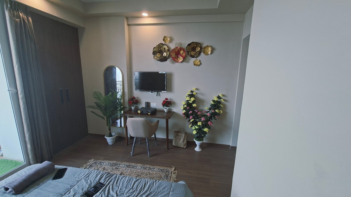 Fully furnished luxurious studio apartment with all modern amenities available in Greater Noida near Metro station. Luxurious , Specious and Couple friendly studio in Greater Noida Near Expo Mart. What You’ll Love: ✔ Unique Interior – Enjoy the Mesmerizing Interior. ✔ Modern Comfort – A beautifully furnished space with a comfy bed, cozy seating, and stylish decor. ✔ Fully Equipped Kitchen – Cook your favorite meals with ease. ✔ Fast WiFi & Smart TV – Stay connected and entertained.