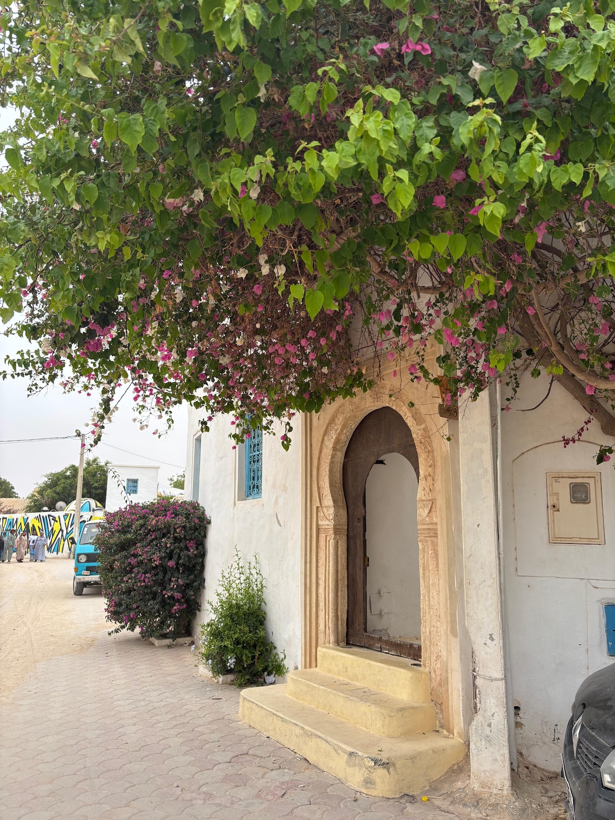 Dar El Mina vous accueille dans un cadre djerbien authentique, propice au calme et à la convivialité. Piscine, palmiers, chant des oiseaux... tout invite à la détente. Idéalement située, la maison se trouve juste en face de la marina de Djerba et de la mer : quelques pas suffisent pour admirer les bateaux et l’horizon. Un lieu paisible pour se ressourcer et savourer l’âme de l’île.