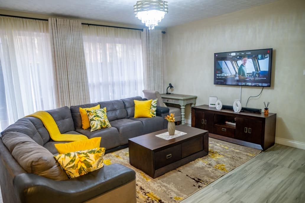 Welcome to our spacious and comfortable three bedroom apartment located in the serene Highlands area of Harare.Ideal for families,groups ,or business travelers,the apartment offers a blend of modern living and homely comfort. The main bedroom features a king-size bed and a private en-suite bathroom for added convenience.The second bedroom has a cozy queen-size bed,while the third bedroom is thoughtfully set up for children, two twin beds .