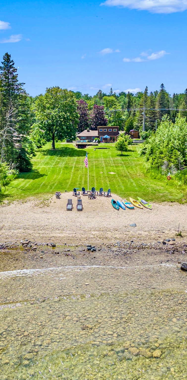 Enjoy the coziness of a bygone era while staying in this 1940s quaint, storybook log cabin. The Hawks Nest has been lovingly restored to its original glory while having all the modern-day amenities woven through its clean 380 sq. ft. space. Retreat to the spacious covered porch to relax and view the acre-and-half property leading down to 100ft of 6Mile Lake frontage. Star gaze while relaxing in the comfortable, Amish-built gilding chairs around the spacious, paver fire pit area .