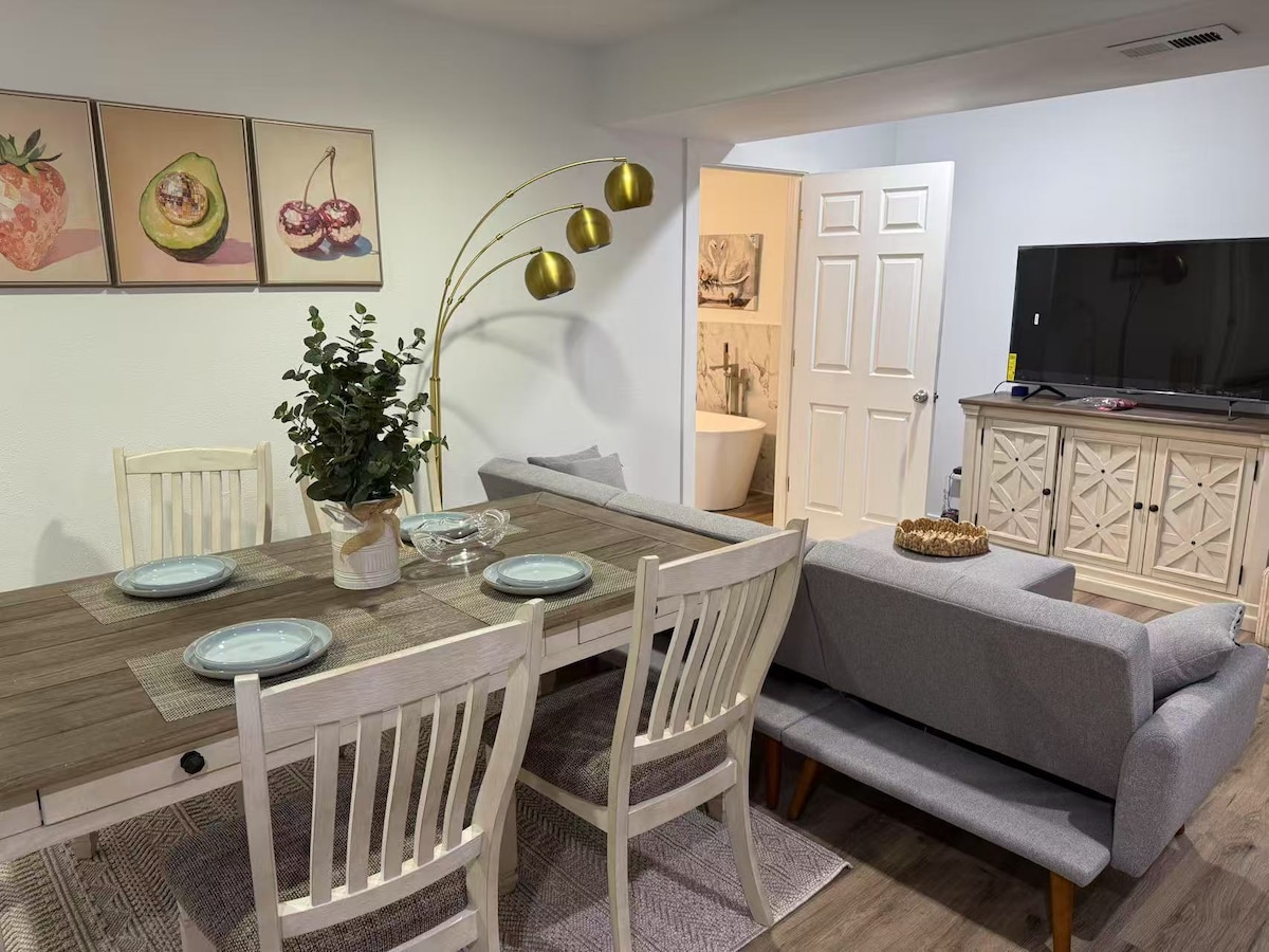 It's a private guesthouse entirely separate from main house. Perfect for social distancing. Easy check in at anytime. Restaurants/businesses are within walking distance. This unit does not have a kitchen but will include a personal fridge and microwave. This space is perfect for those staying a few nights to a week. Same day/last minute bookings are accepted! Additional amenities may be included for those who choose to stay longer. ABSOLUTELY NO PARTIES!