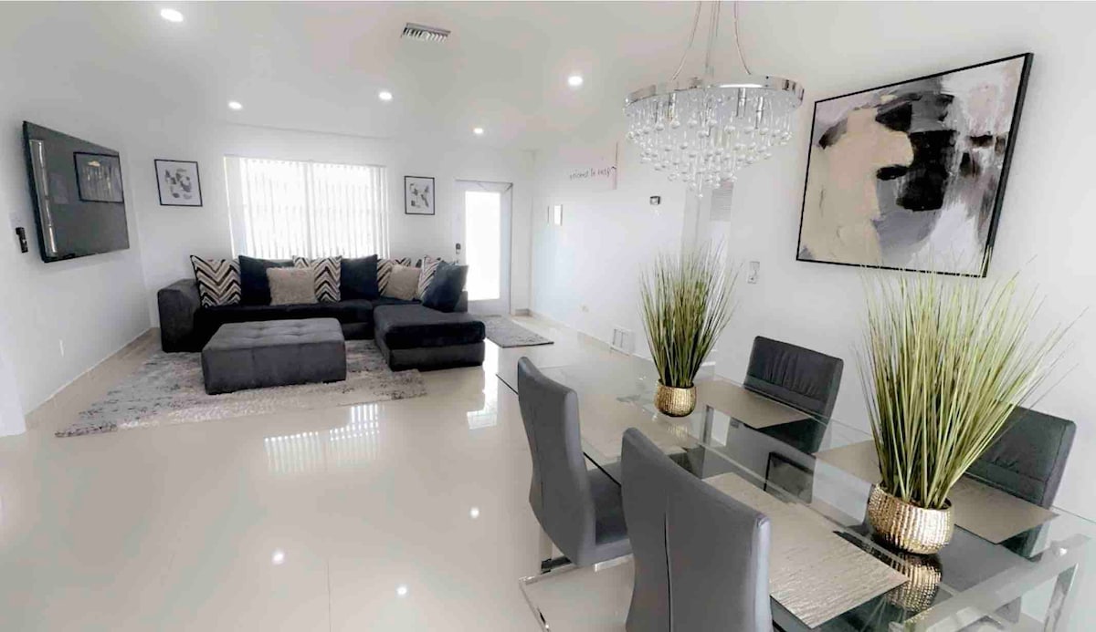 Step into your South Florida getaway, a cozy and colorful two-bedroom home just minutes from Hard Rock Stadium. Designed for comfort and convenience, this stylish retreat is ideal for guests attending concerts, football games, or simply enjoying a relaxing escape. Conveniently located near beautiful beaches and major highways, the home offers easy access to everything South Florida has to offer from sunny shorelines and vibrant nightlife to shopping, dining, and entertainment.