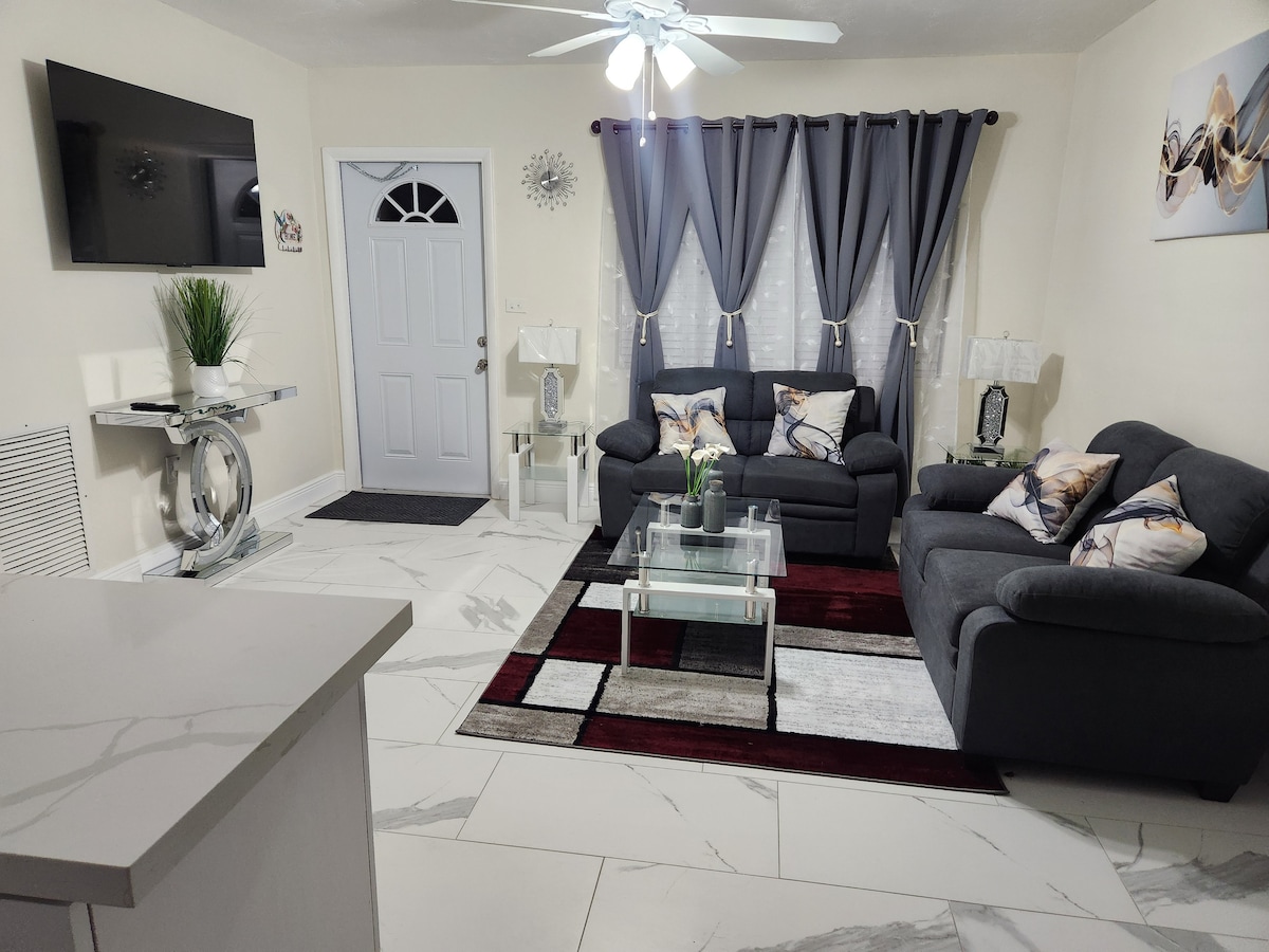 Disfruta de tu estancia en nuestra acogedora suite de invitados, ubicada en Miami Gardens ,muy cerca de restaurantes, supermercados, centros comerciales, a menos de de 5 minutos del Hard Rock Stadium, 15 min del Hard Rock Hotel & Casino, con facil acceso a las principales autopistas como el 826 y autopistas de peajes. Forma parte de la casa principal ,pero tendra su propia entrada privada, bano privado y un pequeno patio totalmente cercado.