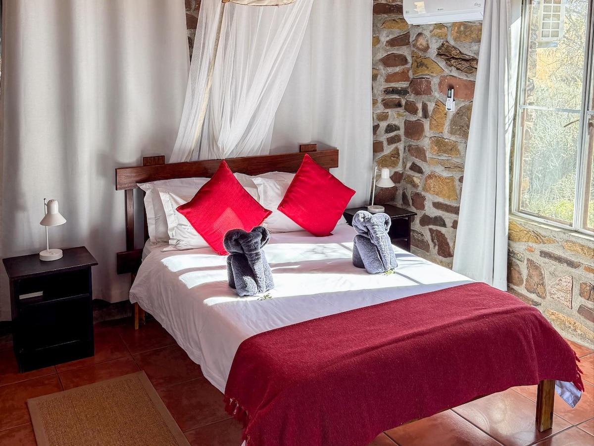 An unforgettable stay: Located within the red sand of the Kalahari desert, we are a family run guest farm and wildlife sanctuary. We offer full board accommodation, which includes a lovely local breakfast, lunch, coffee and cake, and dinner. We offer spectacular activities such as - horse riding, game drives, rhino tracking, birding excursions, or simply just hiking. A lovely pool, lapa, library and waterhole are within walking distance of the room. Additional person or children on request.
