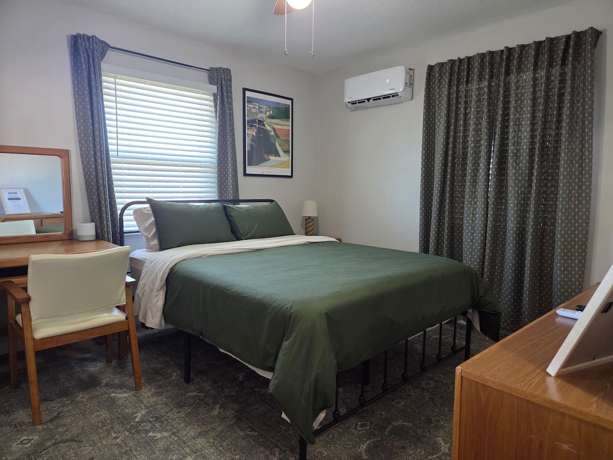 Keep it simple at this peaceful and centrally-located studio !! You will have your own private entrance. The studio is connected to the main house, but you are guaranteed complete privacy . Enjoy the 1 bedroom, 1 bath with full kitchen. The bed is a king size bed and there is a twin floor mattress . The studio has its own washer and dryer. In addition, you can walk to all the nearby restaurants and heritage park on Mainstreet!