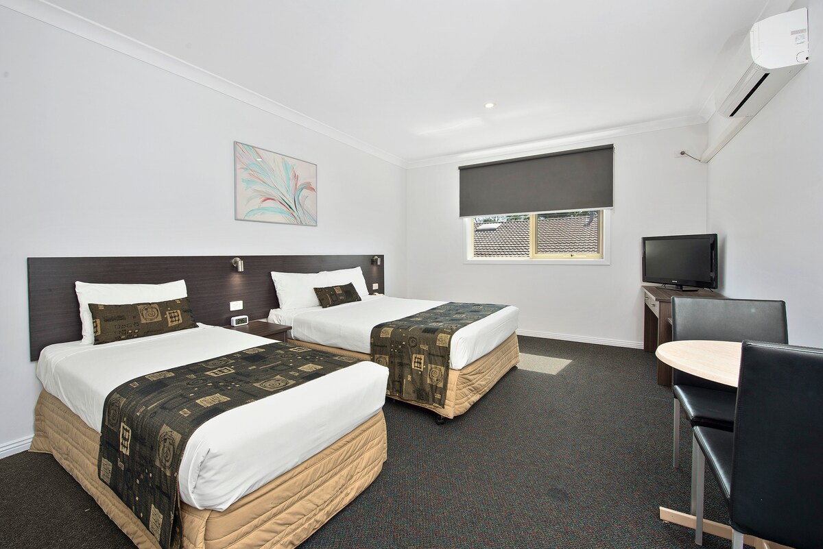 This air-conditioned room features a TV, DVD player, toaster, kettle, microwave and a refrigerator. It also includes a private bathroom with free toiletries. Please note that the price is based on 2 guests. There is no capacity for additional guests. Amenities & Features Non-Smoking Separate Shower & Bath Toilet Amenities Ironing equipment Towels Provided Reverse Air conditioning & Heating Cots Available Hair Dryer Microwave Linen / Bedspread Provided Tea/Coffee Making Wi-Fi Pets charged extra