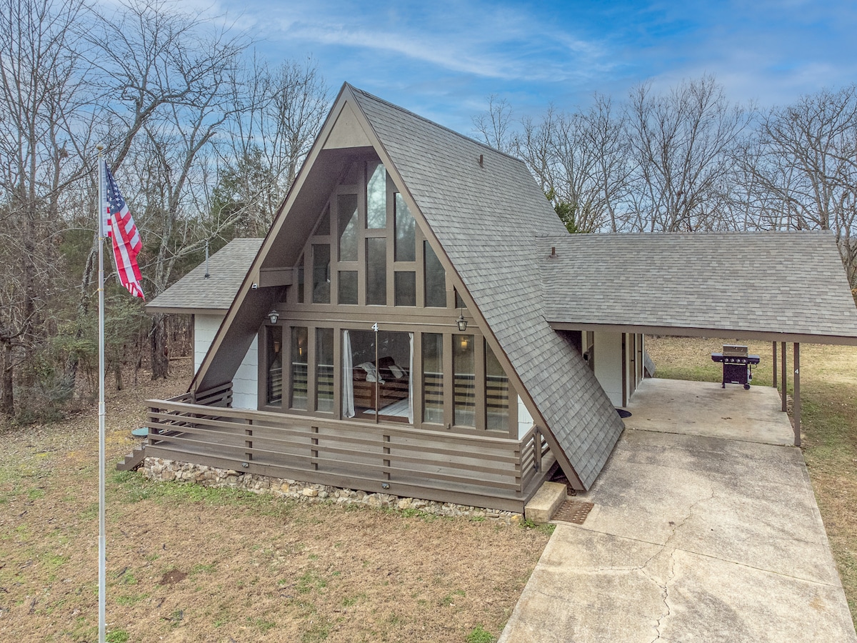 Quiet, modern A-frame retreat with forest views, fast WiFi, and a dedicated workspace—ideal for couples, families, and remote work. Escape to this private A-frame tucked among the trees of Cherokee Village. Designed to feel like a peaceful home away from home, this cabin offers soaring windows, a quiet setting, and modern comforts—just minutes from town, lakes, golf, and year-round outdoor recreation.