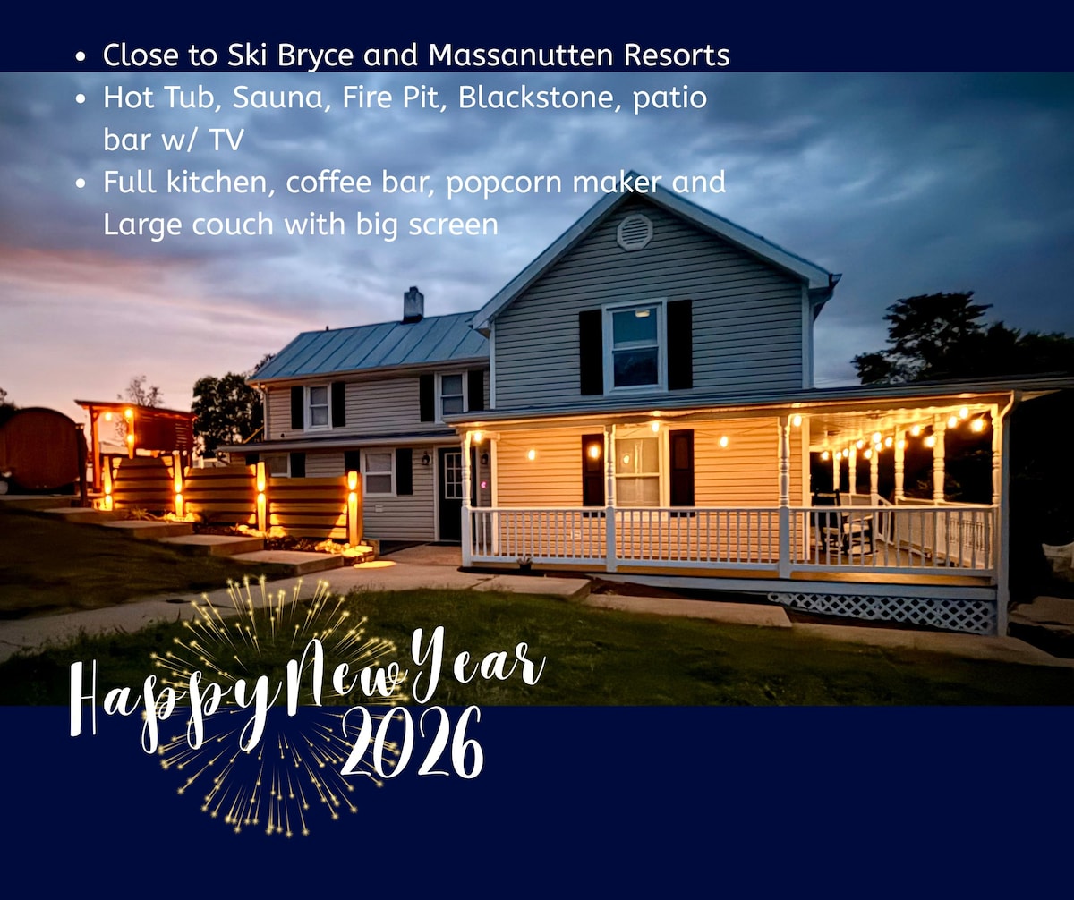 🌾Escape to Blue Ridge Farmhouse Retreat—your holiday getaway with stunning mountain views, surrounded by farms and wineries. Enjoy a private pool, hot tub, sauna, blackstone and nearby adventures like hiking, caverns, resorts, Shenandoah National Park. Unwind with local wine, farm-fresh markets, peaceful sunrises and sunsets. Just 2 hours from DC and Northern Virginia NOVA, it’s the perfect mix of relaxation and adventure in Virginia’s countryside, Shenandoah Valley, Bryce & Massanutten Resorts