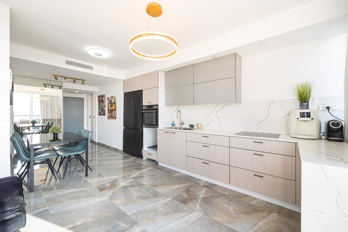 This beautifully designed home features a 60 sqm private balcony, suitable for a Sukkah, and offers comfort and elegance throughout. The apartment includes 3 bedrooms with queen-size beds and additional pull-out beds, accommodating up to 9 guests, each with a private en-suite bathroom. Enjoy a fully equipped kitchen with a Shabbat refrigerator, a stylish living area with a sofa bed and 55” Smart TV, washer/dryer, and two private parking spaces—perfect for an unforgettable Jerusalem stay.