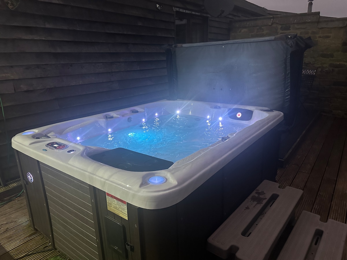 Log cabin with stunning views of the nidderdale countryside. Hot tub. Sleeps 2 adults, and 2 children. Double bed and pull out sofa bed. Internal stylish bathroom with shower, toilet and sink. Facilities include, smart tv, double hob, kettle, toaster, microwave, and small chiller unit. Towels and miniature toiletries provided. Bedding provided. 5 minute walk to local pub. 3 miles Pateley bridge, 8 miles Ripon, 13 miles Harrogate. Owls, meerkats and local wildlife will be seen on the premises.