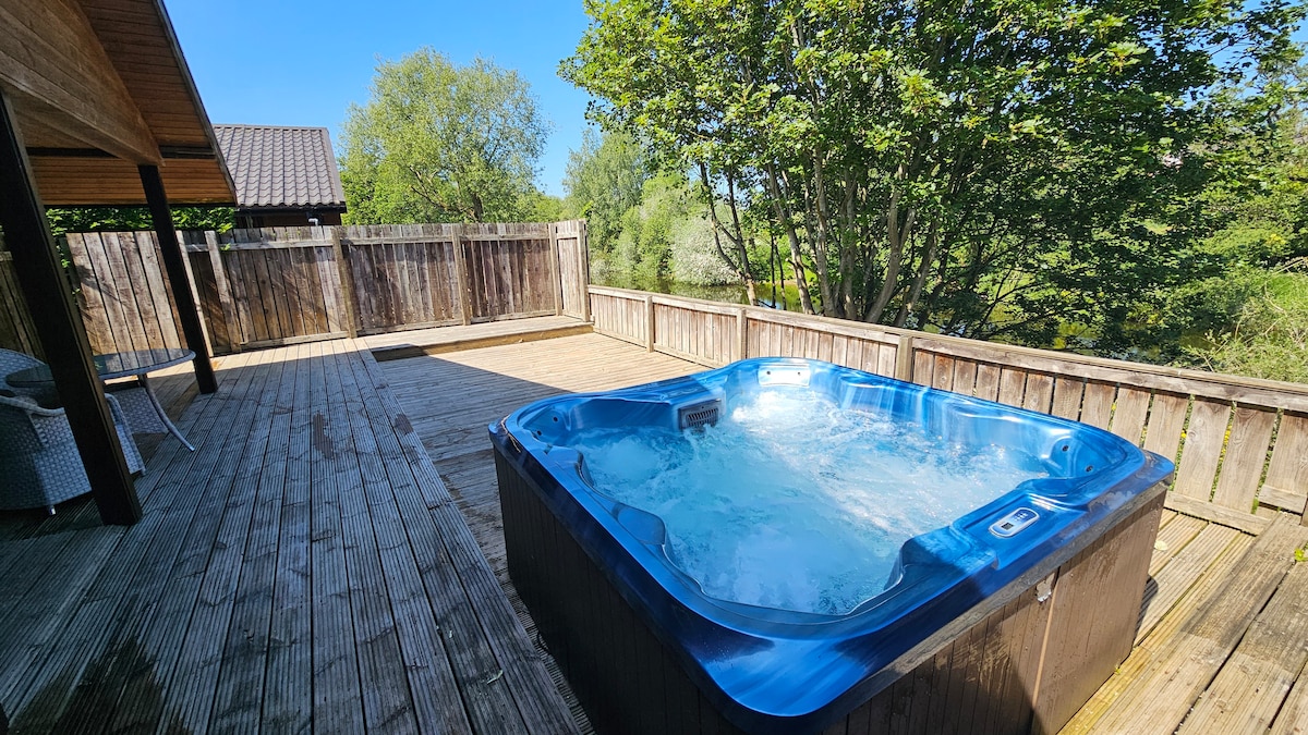 Welcome to The Lodge, a great location in the heart of the Worth Valley. A stone's throw from Haworth, home of the Bronte sisters and right next to Oakworth Steam railway station, where the iconic Railway children was filmed. Experience the rustic, homely river view Lodge, listening to the sounds of nature while relaxing in the hot tub.