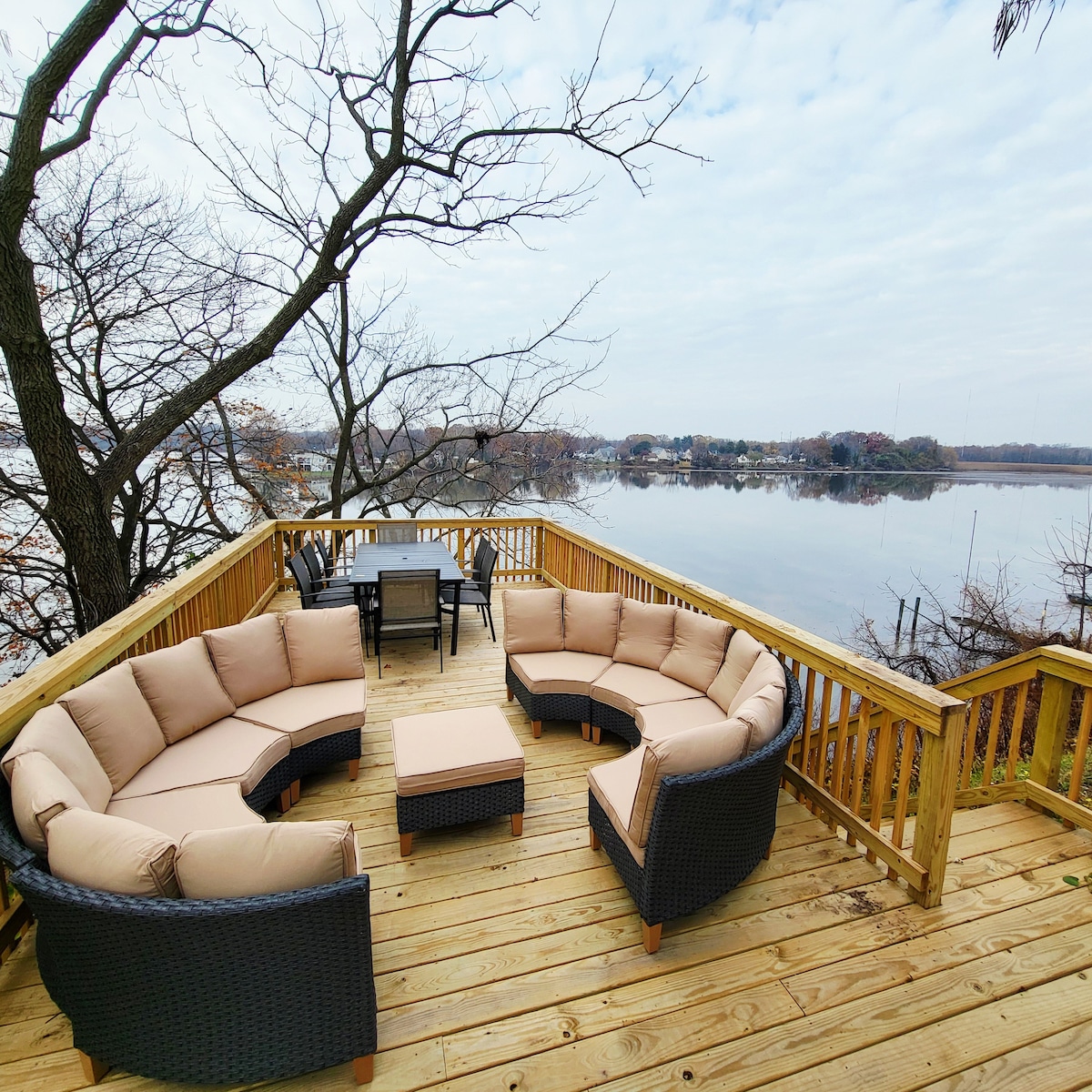 Your family will be wowed by this NEW waterfront 5 bedroom home with a home office, TWO balconies. Indulge in birdwatching (spot a bald eagle? ), boating and jet skiing! Visit Baltimore, DC, Philly, Golf and more! This new home is ideal for large families, long-term stays, or remote work. Three Queen beds; two twins and a bunk bed (full + twin). Sofa bed/queen and air mattresses for five more guests at an additional cost.