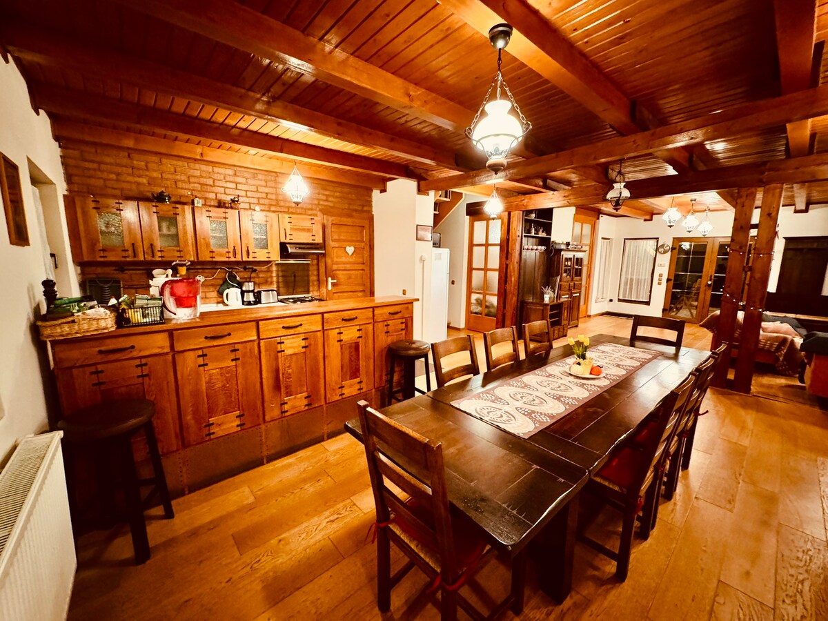 In the summer you can walk, or in the yard there is a small pool, sauna, grill, in winter there is a ski slpoe, we also have table tennis, darts, and table football. We have fitted kitchen, but we also provide food on request.