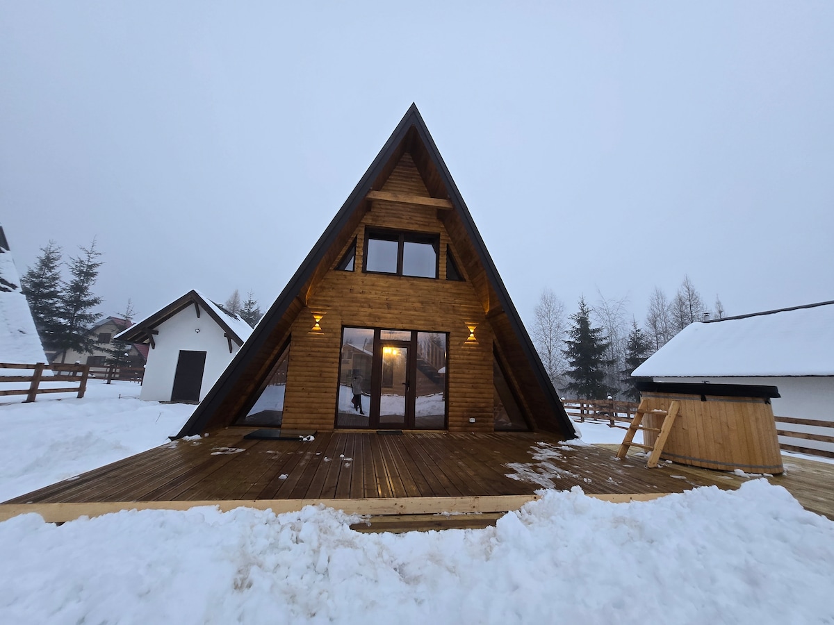 Relax in our modern, cozy A-frame cabin in Sovata, perfect for up to 4 guests. The cabin features 2 bedrooms, a private jacuzzi, TV, fully equipped kitchen, and heating and cooling via heat pumps. Step outside and relax on the terrace, equipped with outdoor furniture and a grill, and enjoy the quiet garden and fresh mountain air.