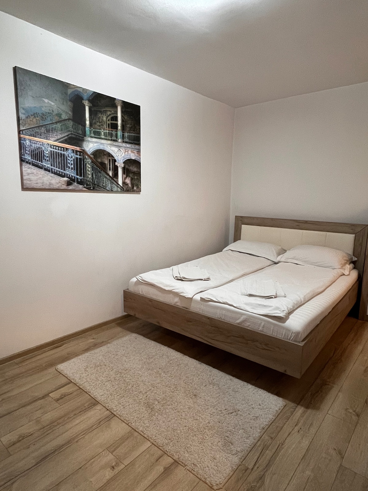 Egyszerű kis Stúdió szoba,csendes környezetben,zöld övezettel és ingyenes parkolással. A szoba egy kétszemélyes ággyal és egy kihúzhatós kanapénval van ellátva,így elegendő lehet 4 személy számára.A szoba mérete miadt viszont 2 felnőttnek és 2 gyereknek ajánlom,4 felnőtt kissé szűkösen fér el a szobában .
