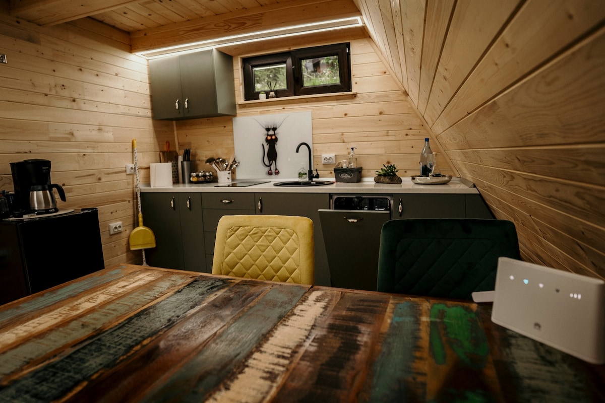 Punem la dispoziția dumneavoastră 3 casuțe tip tiny house intr-o locație deosebita in mijlocul naturii ,fiecare căsuța cuprinzând următoarele : 🏡O camera cu pat dublu 🛏️ 👩🍳O bucătărie complet utilată cu spatiu de luat masa și pregătită pentru prepararea oricărui tip de mâncare 🏡O canapea extensibila pentru 2 persoane 👫 🚿O baie cu toate facilitățile 🚰Unitatea dispune de apa calda si rece 🌬️Aer condiționat rece/cald 📶WiFi 🚴♀️Biciclete 🅿️Parcare 🛖Un foisor 🛝Parc de joacă 🔥Ciubăr