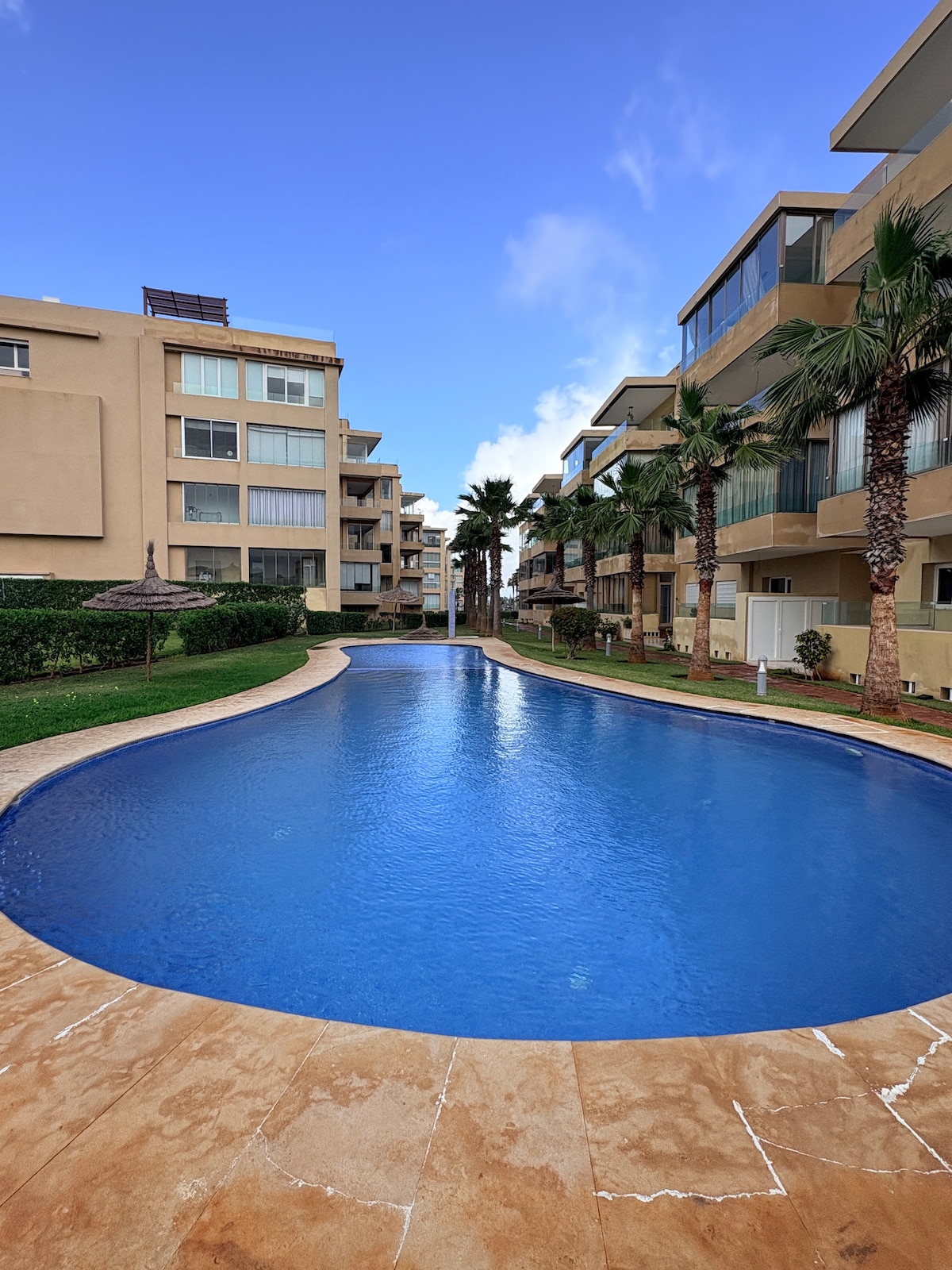 Appartement neuf, situé dans une résidence fermée et sécurisée avec magnifique jardin commun, piscine, ascenseur et parking privé au sous sol. L’appartement se distingue par son style moderne, ses espaces lumineux et sa vue exceptionnelle sur l’ocean. Les chambres, spacieuses et équipées de placards intégrés, garantissent un espace de vie fonctionnel et confortable. Idéalement situé à proximité de toutes les commodités, cet appartement offre un cadre de vie pratique et exceptionnel.