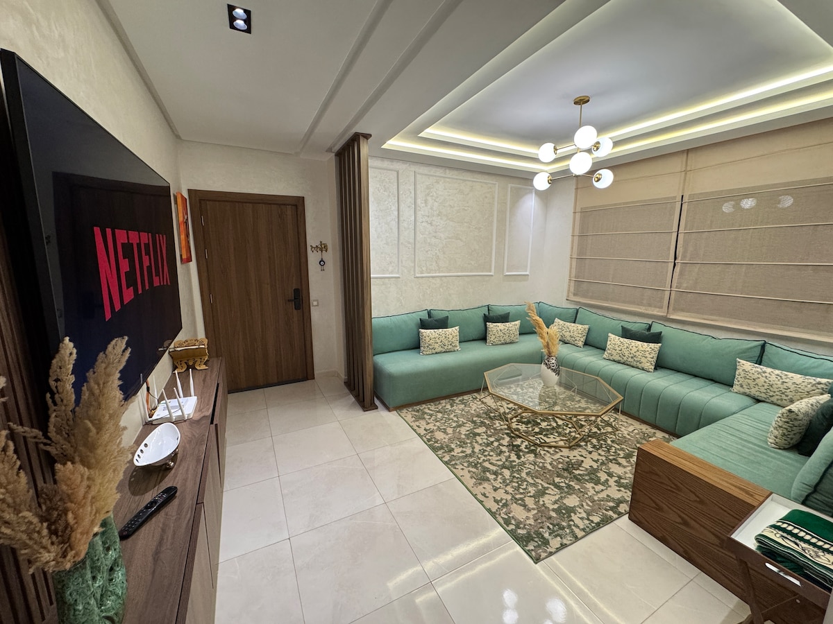 * le logement est pourvu de la fibre optique, avec WiFi à très haut debit, permettant d’effectuer le télétravail, ou les jeux en lignes, ou voir des films sur Netflix ou IPTV..... dans des meilleurs conditions. * Harhoura est une station balneaire paisible à proximité de Rabat. La Residence est à 5 minutes de marche de la plage guyville et de la forêt de Harhoura. * Il y’a un parking gratuit juste devant la résidence.