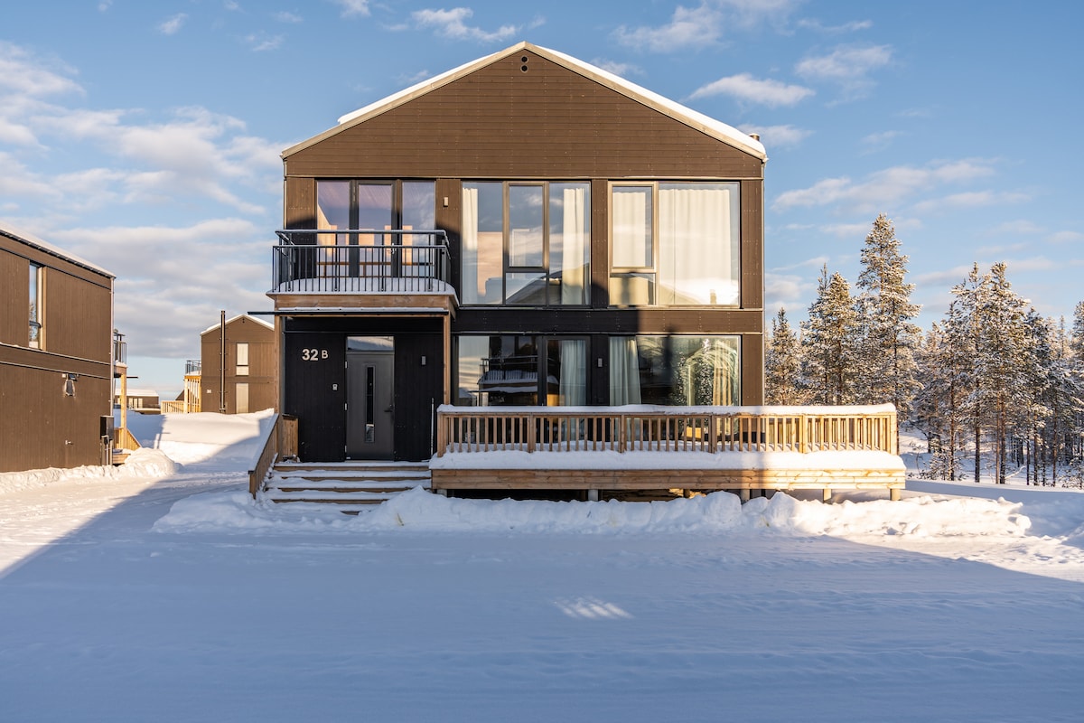 Magisk lodge i lugnt läge nära vandringsleder och med glidavstånd till skidåkning i både backar och spår. Efter en dag uppe på fjällen kan ni komma in för att basta, gosa ner i soffan vid öppna spisen eller njut av en middag runt det stora middagsbordet framför glasväggarna som ramar in fjällmiljön likt en stor tavla. Lodgen ligger nära Storhogna M där det finns restaurang, skiduthyrning, självbetjänande matbutik och bowling. 2 km bort finns högfjällshotellet med spa och fler restauranger.