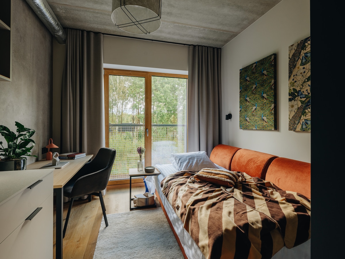 2 cosy studios under the pine forest and 50 m from the sandy beach. A wonderful place for recovery and relaxation. Located 35 km from Tallinn, away from the hustle and bustle. The studios are on the villa's ground floor, our home is on the next floor. Both studios have separate entrances and both have a serene view. This studio is with a forest view and also with partial sea view.
