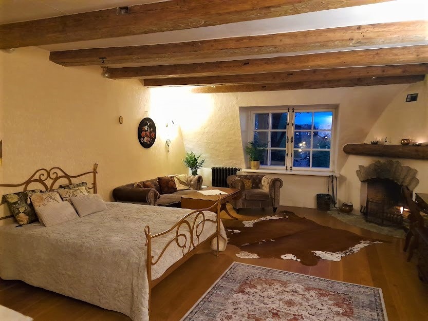 A unique three story single family house is located in an easily accessible part of the Old Town.The house`s thick limestone walls are partly the tower of the medieval city wall. You will find romance and privacy here within the small Scottish Park, behind a lockable gates to the park and your small private garden. Sightseeings, museums, restaurants of Old Town within a short walk. Enjoy yourself and companions in medieval atmosphere. Great for creative retreat.