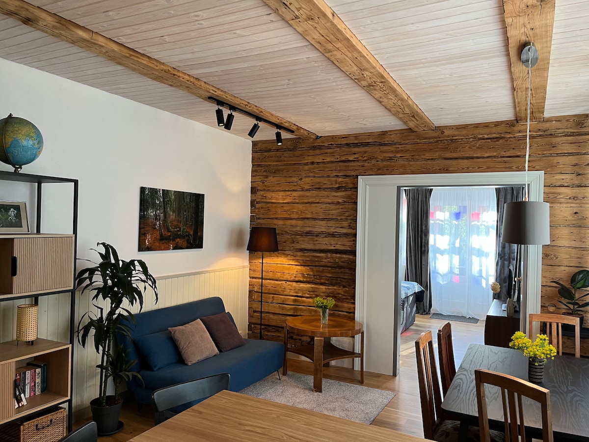 Enjoy your stay in our fully renovated apartment which is just an 8 minute walk from the Freedom Square and Old Town. Free Wifi and free private parking on site. Self check in and out. Our apartment is located in a historic building built in 1889 which is protected by the National Heritage Board. The building and the apartment are fully renovated. It is easy to get around the city center by foot, electric scooters and tram. Cafes, restaurants and grocery stores are close by.
