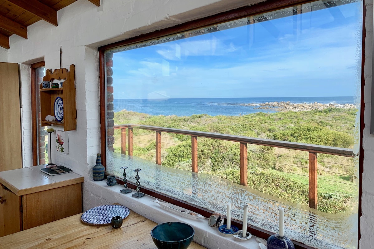 Unwind whilst taking in the spectacular 270 degree ocean and mountain views from the comfort of this luxury Pringle Bay studio. Just 100m from the rocky shoreline you will not only be awed by the views but will hear and feel the waves crashing onto the rocks. * Uncapped WiFi (works during load shedding) * King Size Bed * Flat screen TV with Netflix, AppleTV+ and YouTube * Fully equipped kitchen * Fireplace * Heated towel rail * Handheld bidet * Great coffee * Lockable Safe * Hair Dryer
