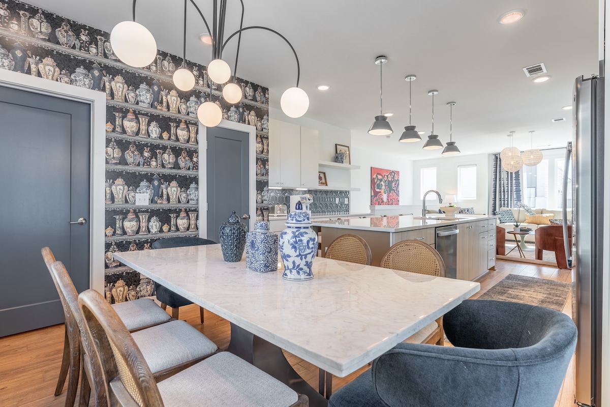 Expansive & Stunning one-of-a-kind home in the heart of Nashville's Nations neighborhood. You won't find another house like this one! Only 10 minutes to downtown Nashville's Broadway area. Private Pool + Hot Tub. Fenced-in yard, outdoor patio furniture, floor to ceiling windows, massive outdoor & patio spaces, grill, fireplace, chef's kitchen & sleek finishes throughout. This modern ranch retreat has it all! Walk to restaurants, breweries, shopping, and coffee. The pool can be heated for a fee.