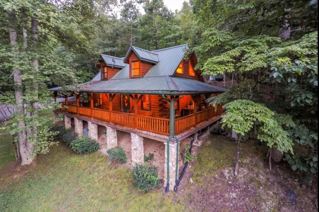 Picture yourself in a cozy Appalachian style log cabin. The soft breeze blowing through the trees while you're swinging on the porch sipping iced tea taking in the enchanting Smoky Mts. All the amenities you need, propane grill, fully equipped kitchen, 2 bedrooms, bath w/shower, washer & dryer, central heat & air. Catch some fish in our pond. Use one of ours bring your pole there's a stocked pond. CATCH AND RELEASE PLEASE