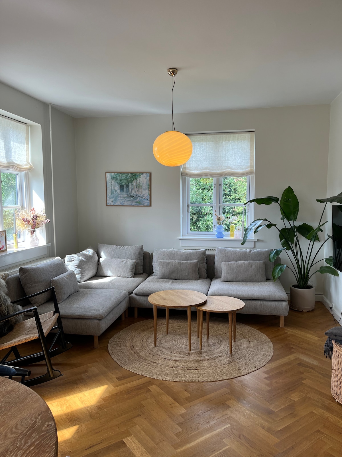 Smuk og indbydende lejlighed med perfekte rammer for et komfortabelt ophold. Beliggende i skønne omgivelser med caféer, restauranter og gode indkøbsmuligheder lige i nærheden. Togstation kun 1 minut væk – centrum nås på 10 minutter. 4 minutters gang til en idyllisk sø – perfekt til en pause i naturen. Lejligheden er en del af en skøn andelsforening med meget store fællesarealer. Bl.a. stor gammel have med stor græsplæne og store træer. Her er bænke bordsæt.