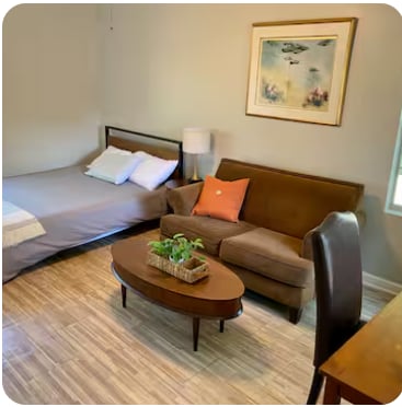 Luxury Pool House Suite with Amazing Finishes. This Space is one of the two pool house suites that sits behind the main house. All three spaces share the luxurious back yard, spa and pool. Guest are limited to keep up with covid restrictions and to help ensure the chill relaxed vibe the space creates. No parties/events are hosted here and the only way to have the pool & spa privately, is to rent the entire compound. The main house has a (3) day minimum. Ask for details if interested.