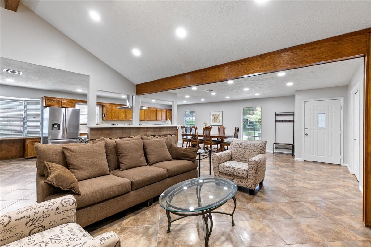 4 BR (or 3 BR/1 office), 2 BA is smartly outfitted for a group or a family of up to 8. Ideal relocation oasis or gathering spot. Open floor plan has fully equipped kitchen, large washer/dryer, screened in patio, pool, comfy memory foam mattresses, new appliances, optional dedicated workspace for the business traveler, ultra-high-speed internet, and other modern perks. Quiet neighborhood, just blocks from I45 and amazing restaurants, easy commute to downtown Houston or Lake Conroe.