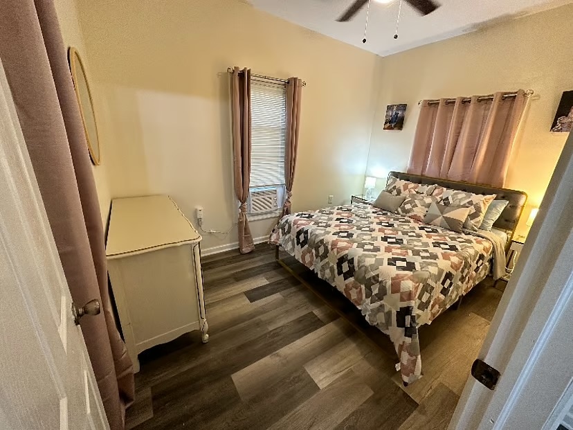 Stay in style at the Court St. Suite! This historic 2-bedroom, 1-bath gem features bold WV-inspired décor, king beds, high ceilings, and a private balcony. Located on a pedestrian mall steps from the courthouse, it’s perfect for professionals or couples. Walk to restaurants and shops. Free parking nearby at 400 W Main St. Note: No direct vehicle access to the building.