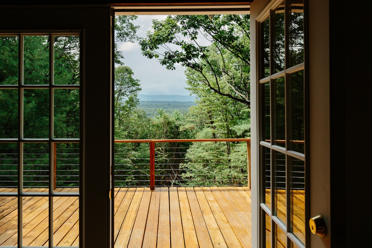 New luxury Chalet with the best breathtaking views in all of Shenandoah. Hike right into Shenandoah National park, the Appalachian trail, and waterfalls! High speed internet, comfortable lounging sofa, smart TV, stocked kitchen, fire pit, washer/dryer, Weber grill, and a large deck with incredible views. Three bedrooms with queen beds, two bathrooms, open living and dining areas. Family and pet friendly. Book with confidence, Superhost with 1,100+ Five Star reviews.