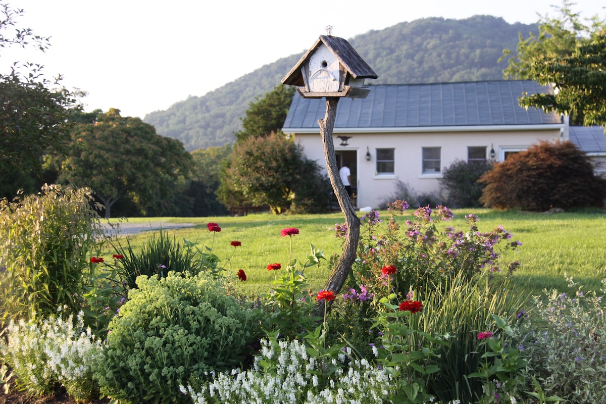 Romantic getaway from the city in the heart of Virginia Wine Country, 15 minutes to Shenandoah National Park, 30 minutes to Charlottesville. Private art studio on 265 acre farm with spectacular Blue Ridge views. Deck overlooks pond. Perfect sunrise and sunset viewing. Walk to swimming hole, collect fresh eggs, feed goats, canoe in pond or simply relax on large private deck. Perfect for one couple. Close to wineries, breweries, hiking, Montpelier, Monticello. 1.5 hrs from DC/ Richmond.