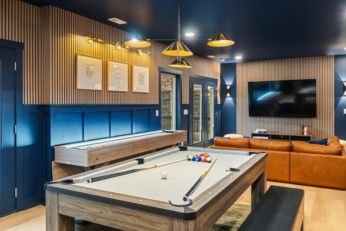 🔥Huge game room; ping pong, Ms. Pac Man, Simpsons, Pop-A-Shot basketball, dartboard & exercise bike 🔥4 bedrooms including dual king master bedrooms with ensuites (1 on main floor, 1 on lower level) 🔥Sparkling hot tub & sauna on private deck 🔥Summer access to community shared pool 🔥2 family rooms; Infinity game table (electronic board games for all ages!), 65" smart TVs, board games, fireplaces 🔥Fully loaded kitchen 🔥Dual bunk room with kids toys 🔥WIFI 🔥2 min to water park