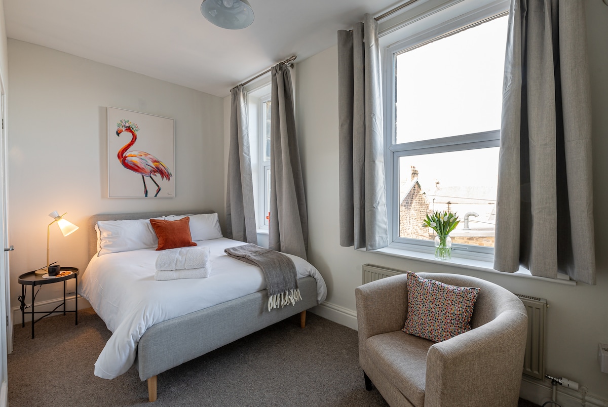 Escape to our restored 2-bed courtyard home in the heart of Harrogate. Perfect for families & professionals, this luxurious retreat sleeps up to 5. Features modern open plan living room with sofa-bed, fully equipped kitchen, Gigafast Wi-Fi,Sky TV, Netflix and free private parking. In a close proximity of Harrogate District Hospital, just a short walk from The Stray, town centre, and top attractions. Your tranquil, stylish Harrogate base awaits!