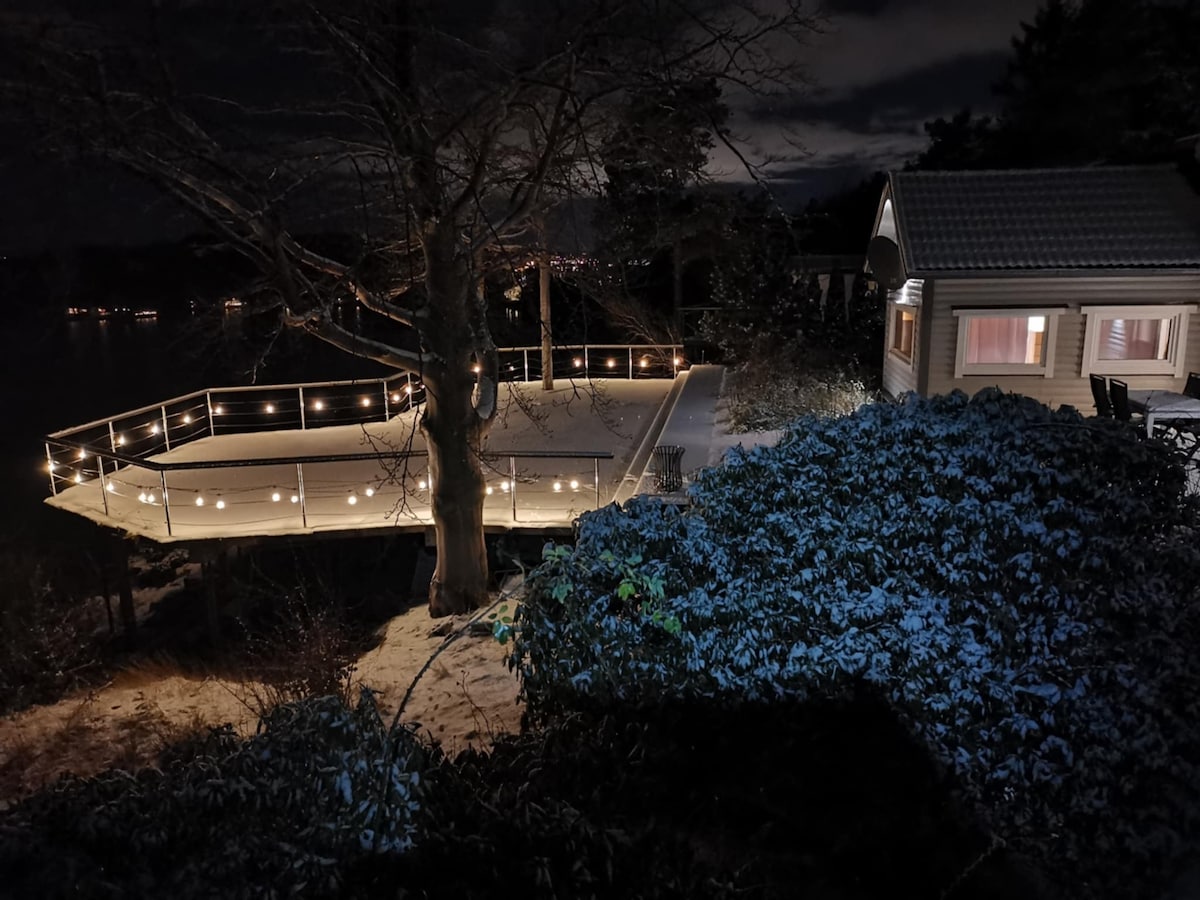 Mysig stuga belägen precis vid vattenbrynet med stor terrass i söderläge. Under sommarmånaderna ingår det en roddbåt och en kanot vid den egna bryggan samt kolgrill och utemöbler. Det finns snabbt WiFi i stugan som når ända ner till bryggan. Stugan har två mysiga sovrum och ett loft där man kan umgås på kvällarna. Det lilla köket är fullt utrustat med det mesta man kan behöva under sin semester, tex mikro diskmaskin samt stor kyl och frys.